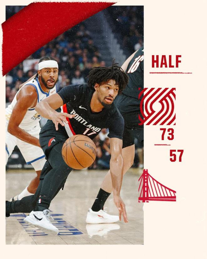 上半场开拓者直接打疯了,进攻手感火热,命中12记三分,直接打爆勇士。这当中夏普13投8中,三分7中4,拿到20分3篮板2助攻;卡马拉三分7中4拿到12分,阿夫迪亚也有13分。而我国球员杨瀚森这边打了10分钟,1中0,0分1篮板1助攻,还出现了2次失误。
