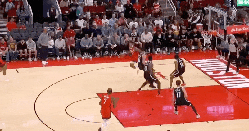 决胜节,由于分差较大,火箭队的防守强度下降,篮网进攻端终于回暖。谢泼德连续两记弧顶三分,分差一度接近三十分。两队换下了主力,让更多的替补和年轻球员上场。