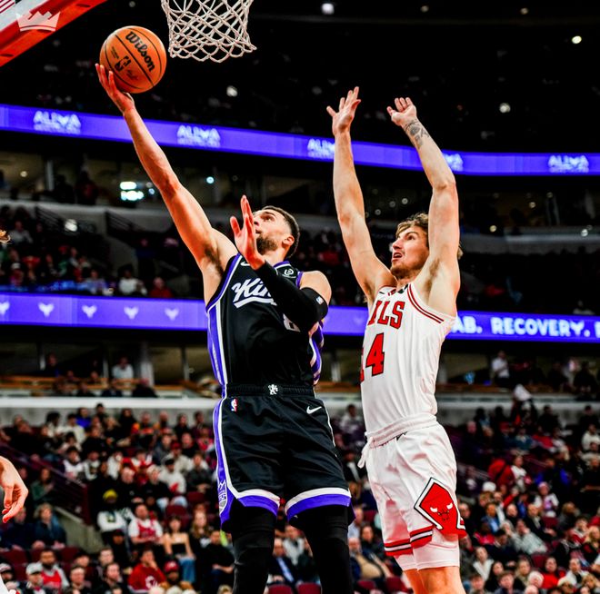 少爷在第三节的效率才下滑,一个三分与一次突破不中,依靠罚球拿到2分,三节打完少爷得分还是上双了,但这一节国王被公牛打了一波39-27大比分落后了。施罗德因为进攻状态太差决胜时刻直接被弃用了(28分钟9中2拿5分7助攻)