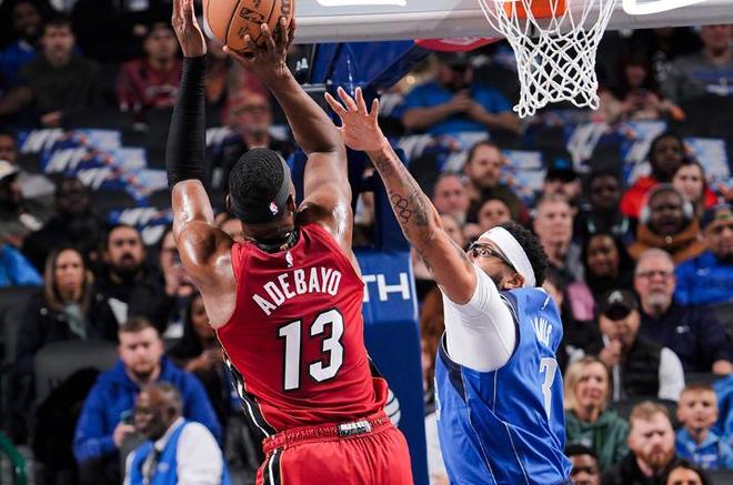 这一个比赛日,热火远征达拉斯挑战独行侠,本场比赛浓眉哥虽然在阿德巴约的防守下,得分效率不高,但是篮板球和防守端的作用依旧明显,再加上弗拉格的稳定发挥,独行侠以118-108击败热火。